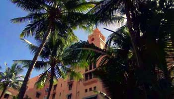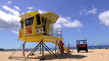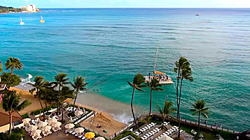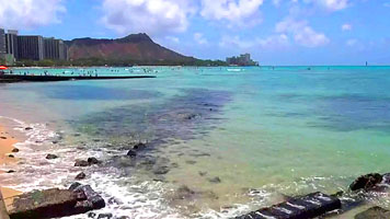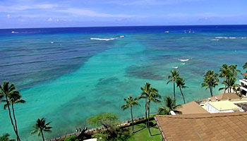 This afternoon on Oahu, the colors of the Waikiki ocean change over time,
