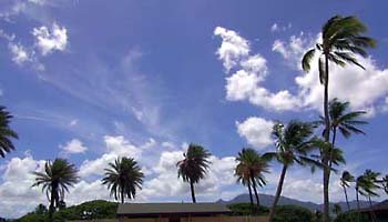 ハワイの島の空を越えてゆく雲、風はあたたかい