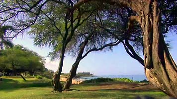 a sacred Hawaiian site, and takes you down to an empty beach.