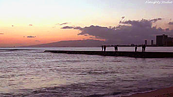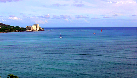 オアフ島の午後、ワイキキの海の色が時間とともに変わり