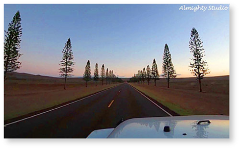 小さな街ラナイシティから、パインツリーの並木が美しく続く海岸への道