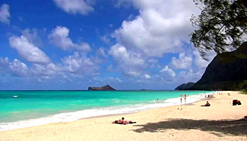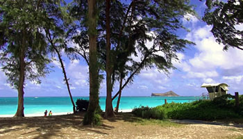A view of Rabbit Island, with the Makapuu wind blowing through the shade of the trees.