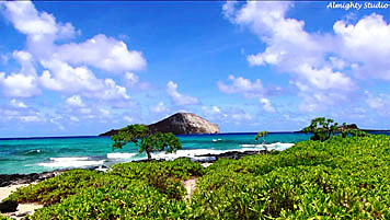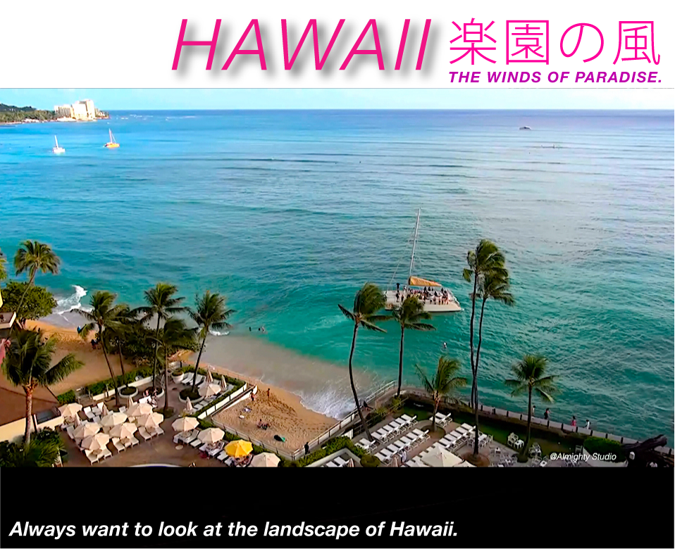 場所はハワイ。美しい海岸、アロハの文化や自然あふれる島です。