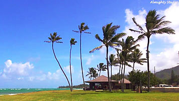 ハワイの島の空を越えてゆく雲、風はあたたかい